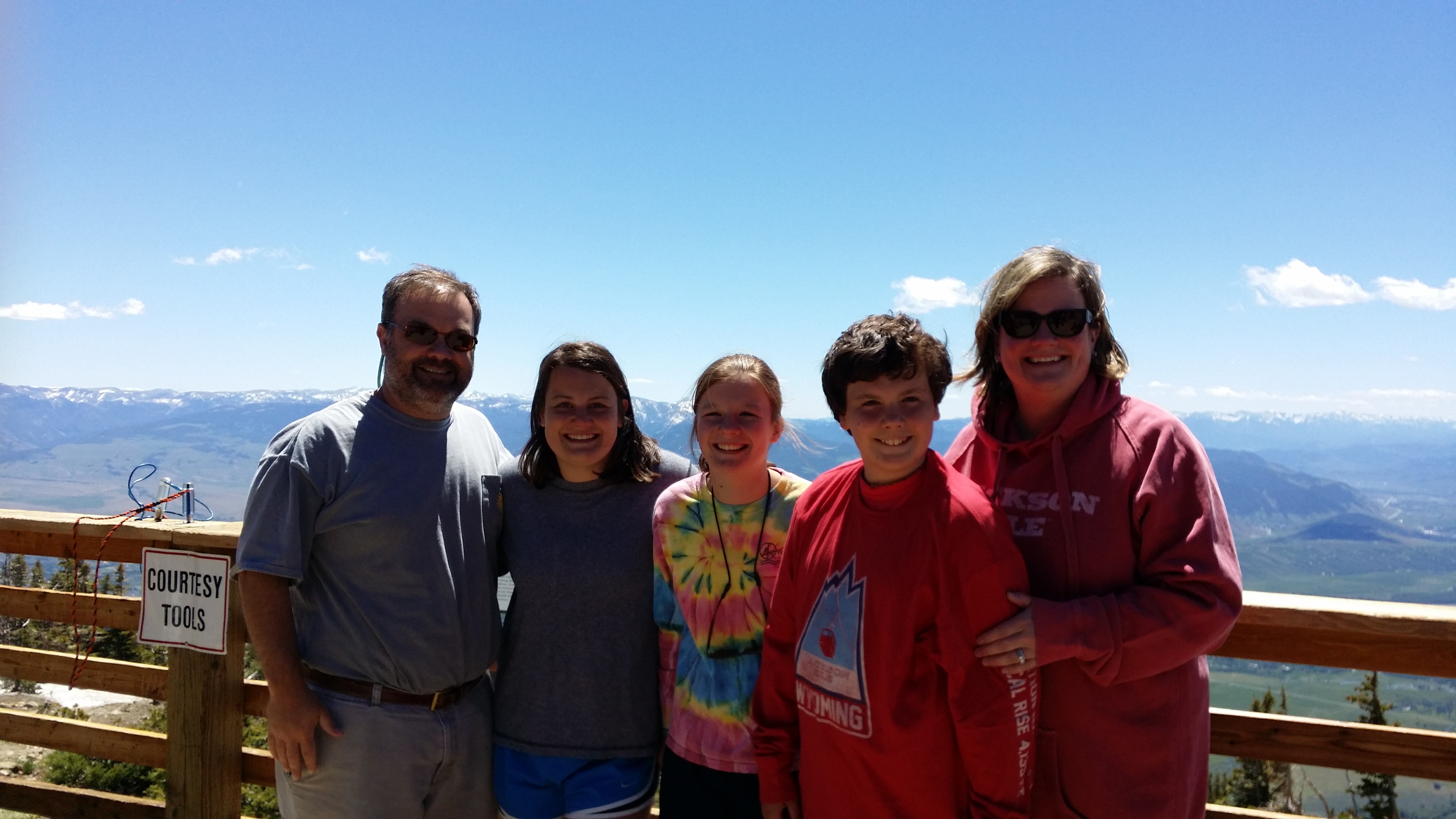 Day 15 we set out to explore Teton Village. We took the tram ride to the top of the mountain, 10,450 feet in elevation. Temperature was in the mid 40’s but there was still a tremendous amount of snow on the ground. The hut at the top served specialty waffles and I definitely recommend the brown sugar waffle with a hot cocoa chaser. After a brief reading time back at the condo, we dressed and headed out again for the afternoon adventure..rafting down the Snake River. Julie’s back was hurting her, so she opted out. No pictures from the rafting trip, I have not found a way to hold onto a paddle and carry a camera as well. It was a great float. J Gar sat in the middle of the raft and echoed the guides every instruction… paddle forward now…all together paddle….right forward left backward…I think he has a future on a rowing team, just not the rowing part. The rapids were larger than the Colorado and we all had to wear wet suits. Now you know why there are no pics. Wet suits are very form fitting and, at least for me, not very flattering. But we were glad to have them as the water was a smooth 50 degrees. After the trip we had a BBQ Chicken dinner back at the rafting base. Returned around 9pm and again, fell into bed.