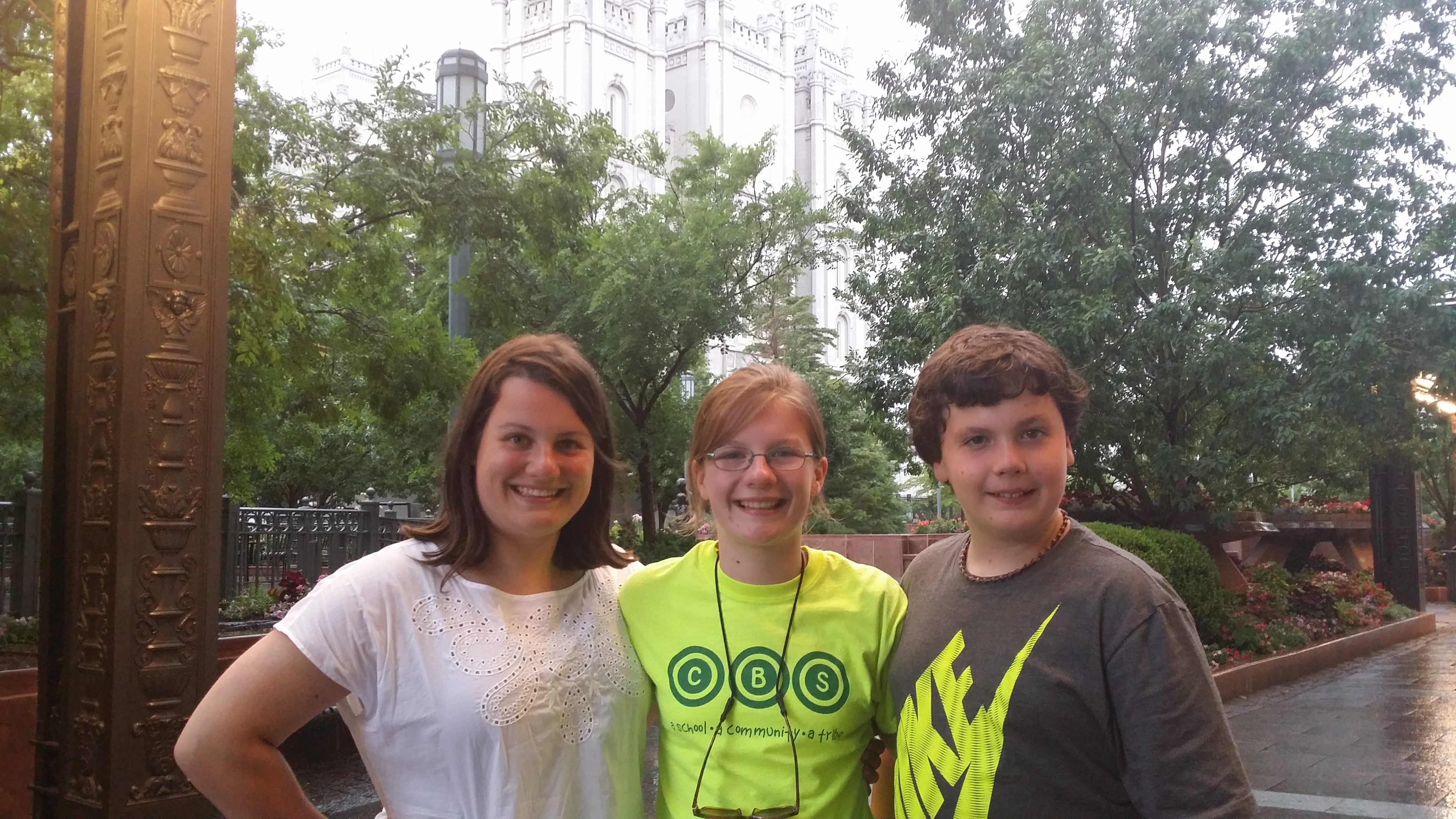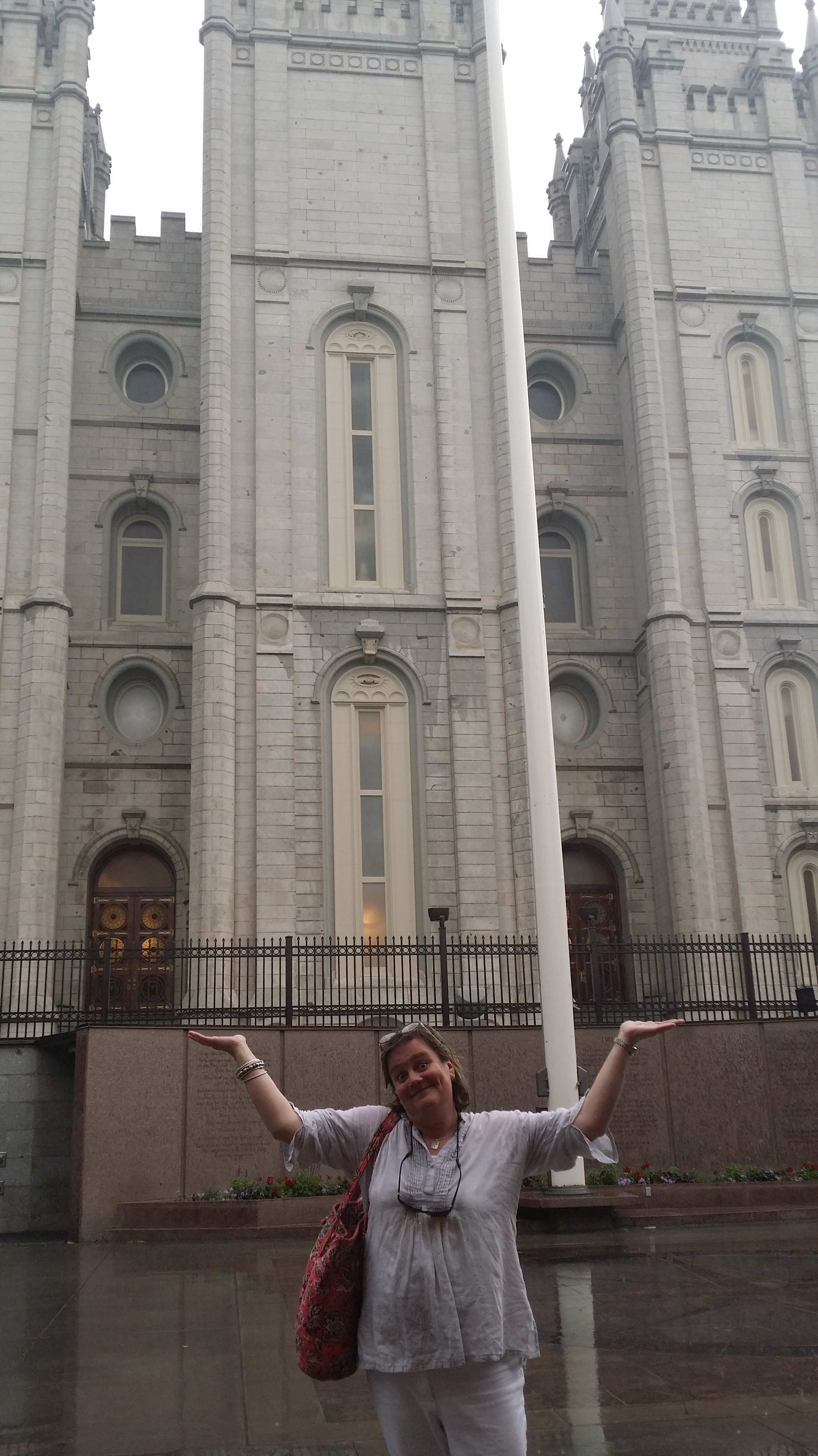 Day 12 was spent primarily in Salt Lake City. After a late sleep in we headed down to main street in Park City for a little shopping and lunch at our favorite lunch place, Main St Pizza. Best milk shakes ever! Anna had the butterfinger milkshake and we named it the LeeBecca Shake in honor of her cousin who had it last back in January. For the afternoon we headed down the mountain to Salt Lake. We were able to go out to the Great Salt Lake State Park and walk out to the lake. The smell of salt was overwhelming. The salt would crunch beneath your feet. After cleaning out the RV to remove all of the sand and salt we returned to SLC and to Temple Square. Had a little trouble getting into the parking lot with the RV, trying not to take out the parking booth in the process. We toured the temple square and learned about the Mormon pioneers led by Brigham Young and the struggles to build the Temple. Toured the tabernacle and the Joseph Smith Center before running in the rain to the Conference Center. Impressive facilities and the kids had lots of questions regarding the Mormon faith. The crowning moment of the day was listening to the Mormon Tabernacle Choir at rehearsal from 7:30 to 9. They were practicing for the July 4th celebration and so the music was all patriotic and ended with a beautiful “My Country tis of Thee.” Returned to Park City and collapsed into the beds by 10:30.